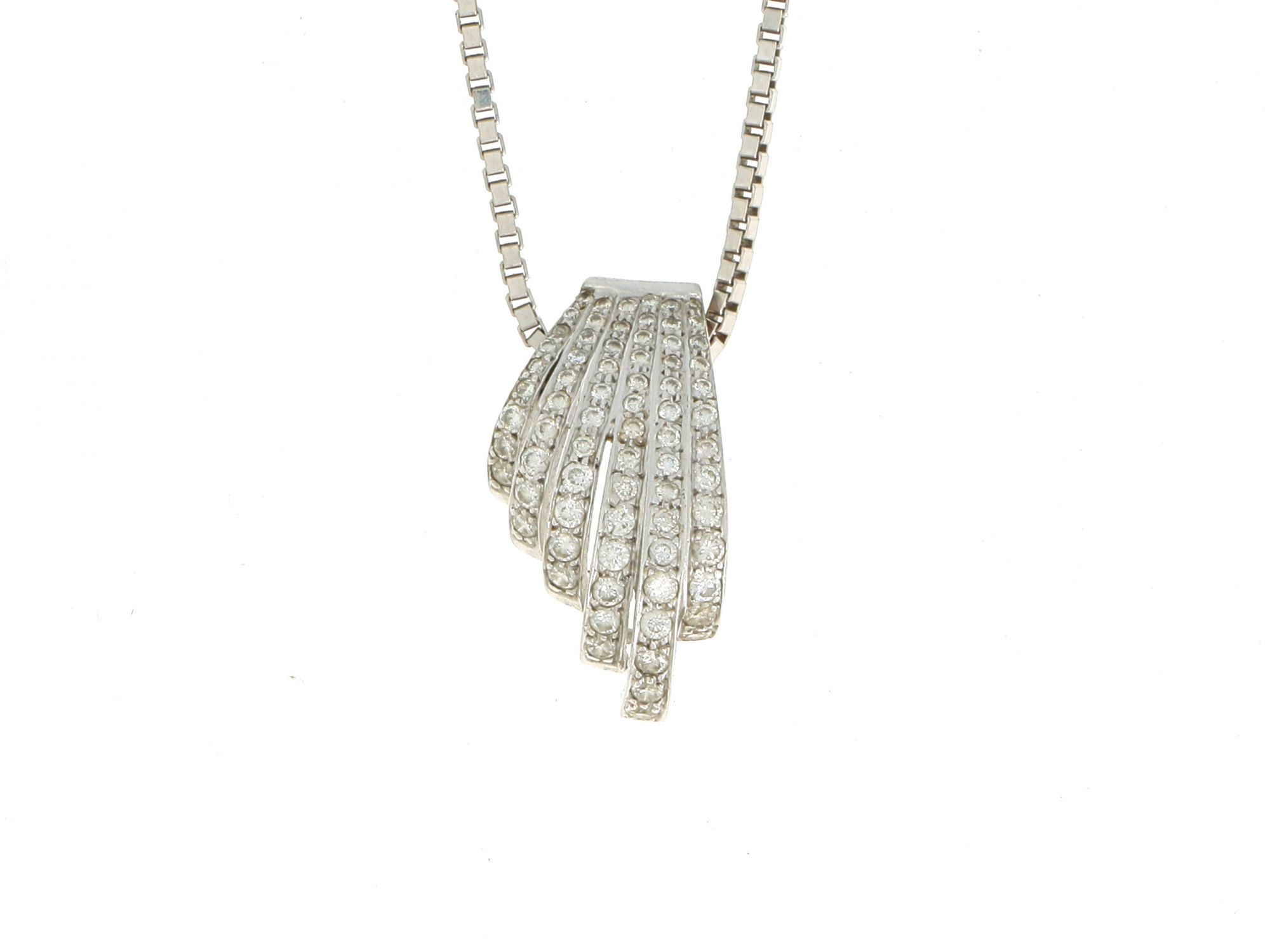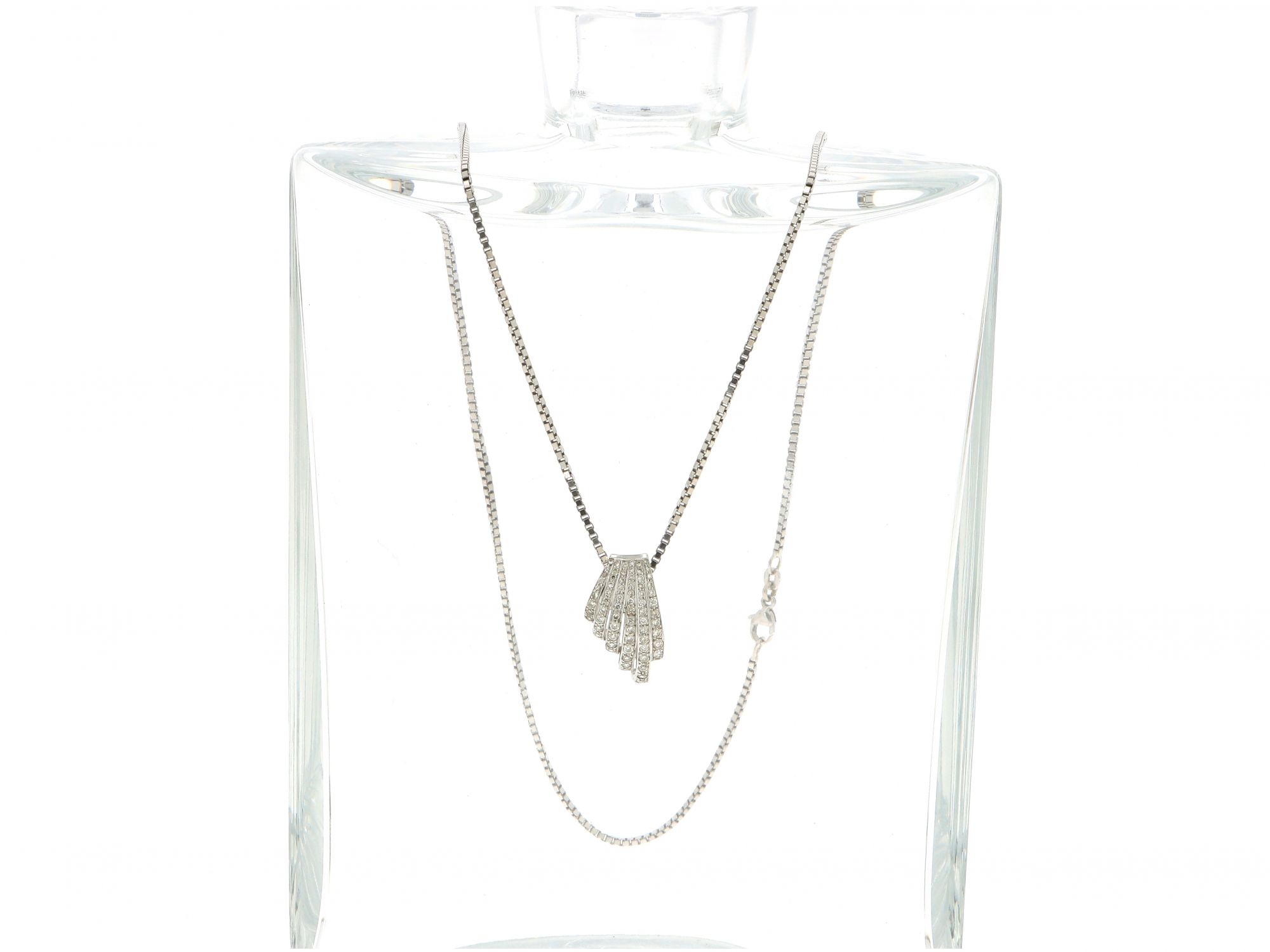 Lote 010 - Fio em Ouro Branco (585) de malha veneziana com Medalha (750) em Ouro Branco em forma de Concha cravejada com 71 DIAMANTES em talhe redondo brilhante, elaborado em OURO 14 e 18 QUILATES. Estado de Conservação: Muito Bom, ligeiros sinais de uso.
