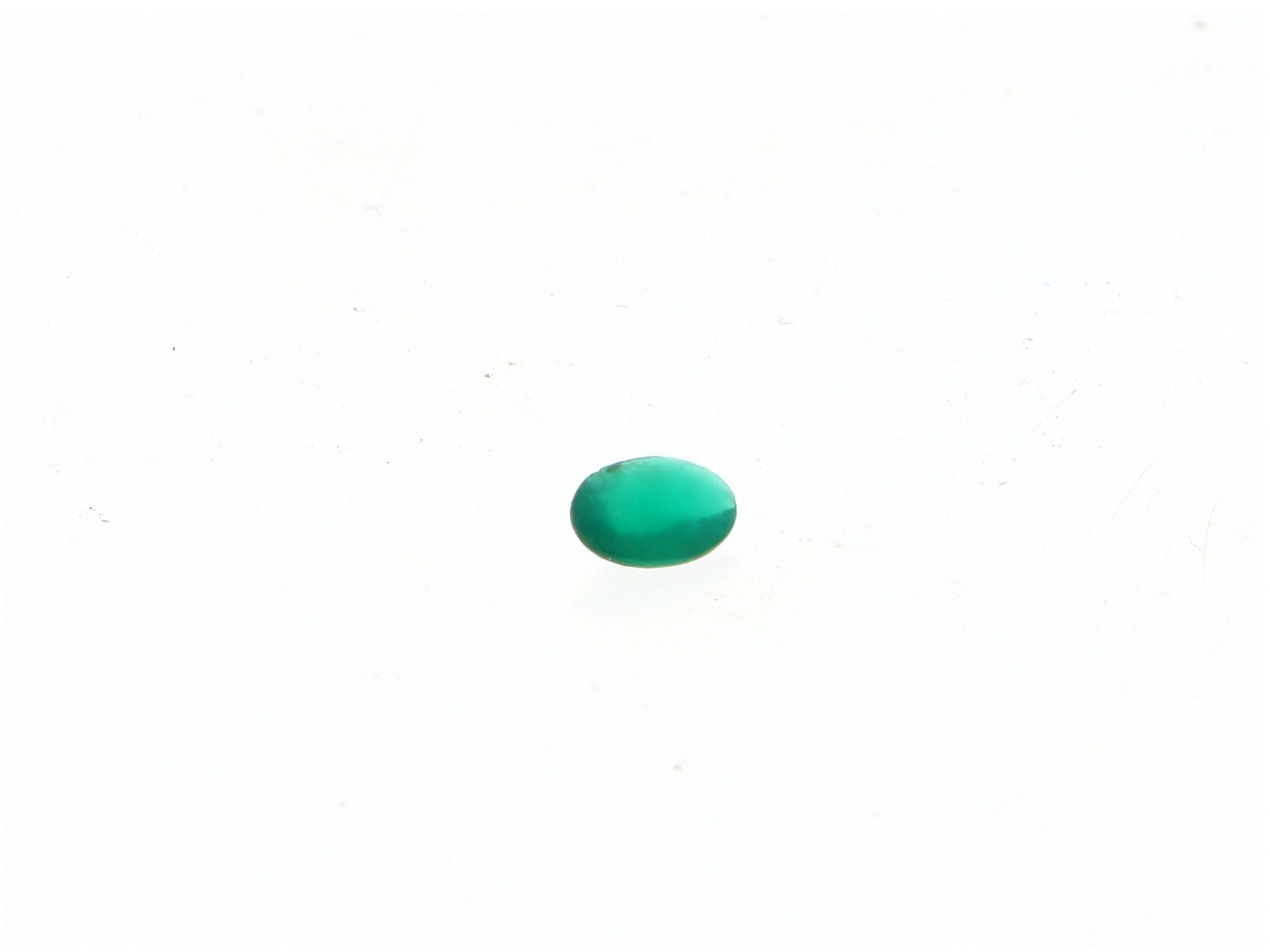 Lote 003 - Pedra ESMERALDA em talhe oval com 0,45CT, testado por Máquina Presidium Duo Tester II Estado de Conservação: Bom, sinais de uso. Medidas (CxL): 0,7*0,5cm. Peso Total: 0,45. Nota Importante: As pedras preciosas apresentadas neste leilão foram testadas em máquina para verificação do tipo de material. No entanto, este teste não permite determinar se a pedra é natural, tratada ou sintética. Assim, informamos que não nos responsabilizamos pela origem ou natureza exata das mesmas, sendo vendidas no estado em que se encontram e sem certificado gemológico.